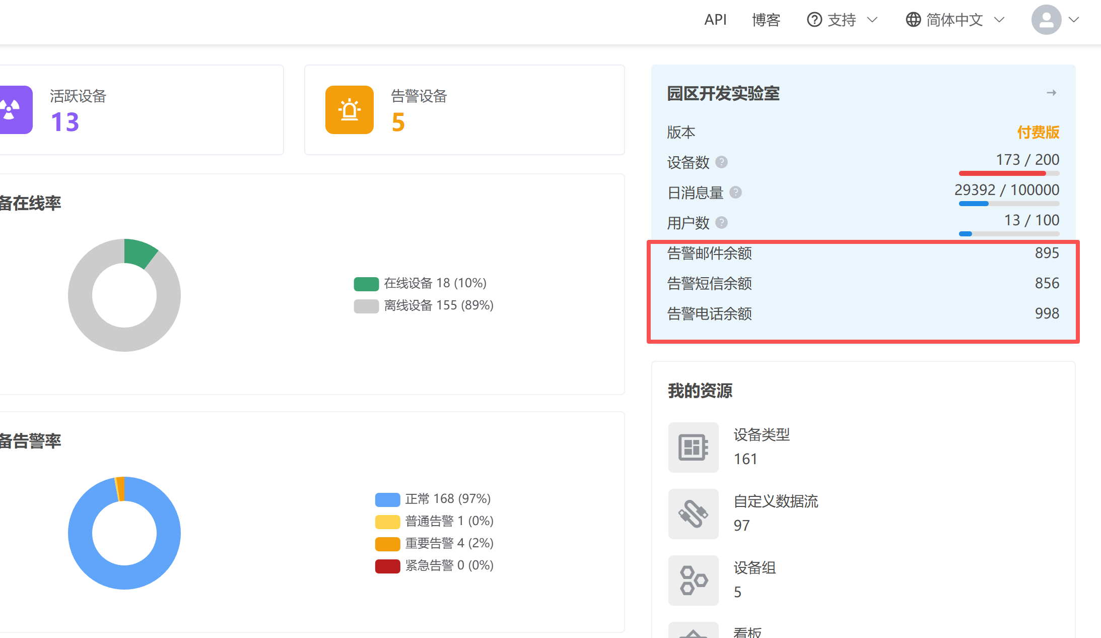 - 电话配额:用于发送电话告警通知。